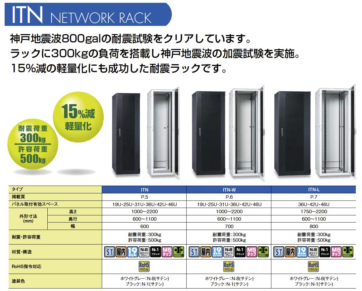 カワムラ 情報通信機器収納ラック ネットワークラックITN 品番:ITN42-8020B 標準価格:176,000円 用途:屋内用 外形寸法:タテ2000mm/ヨコ600mm フカサ:800mm パネル取付スペース:36U 色彩:ブラック(マンセルN-1)サテン塗装 材質:スチール製 マウント規格:19インチ/EIA規格/M5タップ 保護構造− 備考RoHS指令対応 重量:101kg メーカー直送につき代引き不可になります。